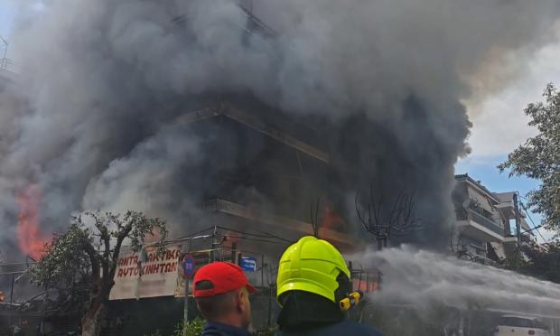 Στο σημείο επιχειρούν 32 πυροσβέστες με 13 οχήματα και 1 κλιμακοφόρο όχημα. Οι φλόγες από τη μεγάλη φωτιά έχουν επεκταθεί και σε διαμερίσματα τα οποία βρίσκονται στην πολυκατοικία, πάνω από το κατάστημα ανταλλακτικών ωστόσο δεν υπάρχουν αναφορές για εγκλωβισμένους. Από το σημείο ακούγονται δυνατές εκρήξεις.
