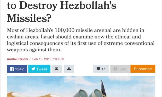 Έτσι  στον Ισραηλινό τύπο δημοσιεύτηκε άρθρο του Ισραηλινο-Αμερικανού  καθηγητή Amitai Etzioni, με το οποίο πρότεινε ότι το Ισραήλ θα πρέπει να εξετάσει τις  ηθικές και υλικοτεχνικές  συνέπειες,  της ολοκληρωτικής  καταστροφής μιας πόλης, προκειμένου να παταχθεί  δια παντός  η εχθρική ομάδα πολιτοφυλακής Χεζμπολάχ. Ο Etzioni έγραψε ότι υπήρξε μάρτυρας του πώς οι Ισραηλινές Ένοπλες Δυνάμεις (IDF) σχεδίαζαν να βρουν και να καταστρέψουν τους ,σύμφωνα με εκτιμήσεις, χιλιάδες πυραύλους της Χεζμπολάχ  που κρύβονται σε σπίτια πολιτών γύρω από μια ξένη πόλη. Αυτό εξετάζεται με δοκιμές που  πραγματοποιούνται  σε ένα μοντέλο χωριό που ονομάζεται Eljakim, το οποίο  δημιουργήθηκε από την IDF στο βόρειο Ισραήλ. Από τις δοκιμές φάνηκε ότι υπάρχουν αρκετά προβλήματα, όπως οι ελεύθεροι σκοπευτές, η ανεπαρκής κάλυψη, και το δίκτυο τούνελ Χεζμπολάχ, τα  οποία είναι πρακτικά αδύνατο να επιλυθούν. Κατά την επιστροφή του στις ΗΠΑ ο καθηγητής, ρώτησε τις στρατιωτικές  επαφές του «Τι άλλες επιλογές θα μπορούσε να έχει το Ισραήλ». Αυτοί λοιπόν πρότειναν  καύσιμα αέρος εκρηκτικά (Fuel-Air Explosives-FAE), τα οποία  προκαλούν τεράστιες εκρήξεις και  ισοπεδώνουν κτίρια σε ένα μεγάλο εύρος. Αλλά, τι γίνεται με τους ανθρώπους που ζουν εκεί ..;  Αυτά τα όπλα, προφανώς, θα πρέπει να χρησιμοποιηθούν  μόνο αφού έχει δοθεί στον πληθυσμό  η ευκαιρία να εκκενώσει την περιοχή. Ακόμα και έτσι όμως , όπως είδαμε στη Γάζα,  πρόκειται να υπάρξουν απώλειες αμάχων.