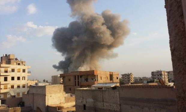 (Φωτ.: Ράκκα, Συρία - 25 Νοεμβρίου 2014. Καπνοί βγαίνουν από ένα κτίριο μετά τους βομβαρδισμούς των δυνάμεων του Προέδρου της Συρίας, Bashar al-Assad, κατά στόχων του ISIS, επιθέσεις που στίχοισαν τη ζωή 130 ανθρώπων. Δεν είναι η Ράκκα η πηγή της ισχύος του Ισλαμικού Κράτους και σε καμία περίπτωση η πτώση της Ράκκα δεν θα σήμαινε και το τέλος του. Από την Άπω Ανατολή μέχρι τη Λατινική Αμερική, το ΙΚ διατηρεί φρούρια και πυρήνες.)