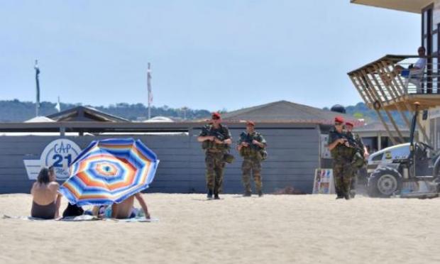 Εντύπωση προκαλεί η έντονη παρουσία στρατιωτών, με πλήρη εξοπλισμό και όπλα, οι οποίοι περιπολούν στις ακτές της Νότια Γαλλίας, ώστε να αποτρέψουν ένα νέο πιθανό τρομοκρατικό χτύπημα από το Ισλαμικό Κράτος.