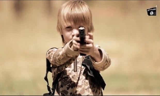 Εκτός, από το ξανθό αγόρι, τον περασμένο μήνα δημοσιοποίησε βίντεο με 5 παιδιά που πιστεύεται ότι έχουν καταγωγή από τη Βρετανία, την Αίγυπτο, την Τουρκία, την Τυνησία και το Ουζμπεκιστάν να κρατάνε περίστροφα και να εκτελούν αιχμαλώτους.