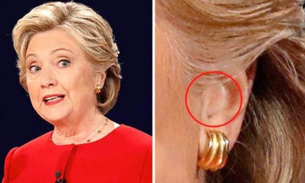 Οι συνωμοσιολόγοι ισχυρίζονται ότι εντόπισαν την κυρία Κλίντον να φορά ένα μυστικό ακουστικό κατά τη διάρκεια της προεδρικής συζήτησης την Δευτέρα 26 Σεπτεμβρίου.
