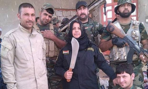 Κρατώντας ψηλά το κεφάλι ενός εχθρού, η επικεφαλής της ομάδας πολιτοφυλακής στην Shirqat είναι από τους ανθρώπους που φοβούνται περισσότερο οι τζιχαντιστές στο Ιράκ. Η 39χρονη γιαγιά Wahida Mohamed Al-Jumaily έχει χάσει αγαπημένα της πρόσωπα στη μάχη με την τρομοκρατική οργάνωση.