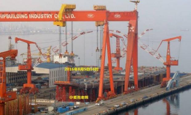 Επιπλέον των εργασιών που πραγματοποιούνται στο ναυπηγείο Dalian σε ειδικό περίκλειστο χώρο πραγματοποιήθηκε η εγκατάσταση της κύριας νησίδας μήκους 30μ. στο κεντρικό κατάστρωμα που θα φέρει το ραντάρ, την γέφυρα του πλοίου και το κέντρο ελέγχου των αεροπορικών επιχειρήσεων.