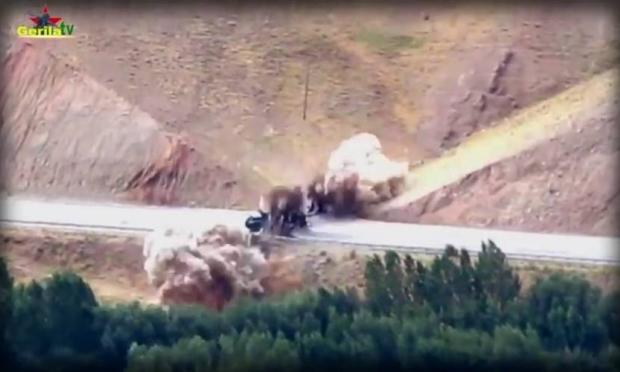 Κούρδοι αντάρτες ανατινάζουν στρατιωτικό όχημα της Τουρκίας που συνοδεύει φορτηγό και κατά πάσα πιθανότητα μεταφέρει οπλικά συστήματα ή εξοπλισμό στα σύνορα με την Τουρκία.