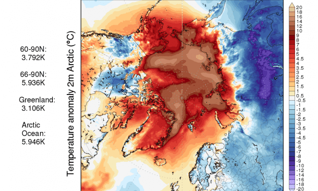 Όλο και συχνότερα, κάνει την εμφάνισή του τα τελευταία έτη, το δίπολο < Καυτή Αρκτική-Κρύα Ευρώπη> . Κατά το φαινόμενο αυτό, οι περιοχές γύρω απο τον Β.Πόλο, παρουσιάζουν μια θεαματική θετική θερμοκρασιακή απόκλιση, της τάξεως των +10 με +20c πάνω απο τα κανονικά για την εποχή επίπεδα. (!)