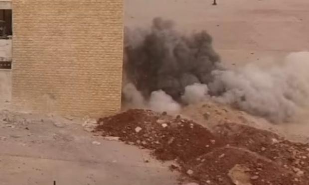 Ένας στρατιώτης, πιθανότατα του συριακού Στρατού, ήρθε αντιμέτωπος στο δυτικό Χαλέπι με μια ρουκέτα από σύστημα ΒΜ-27 η οποία έσκασε σχεδόν μπροστά του. Ευτυχώς και σαν από θαύμα ο στρατιώτης φαίνεται να μην τραυματίστηκε καθόλου.