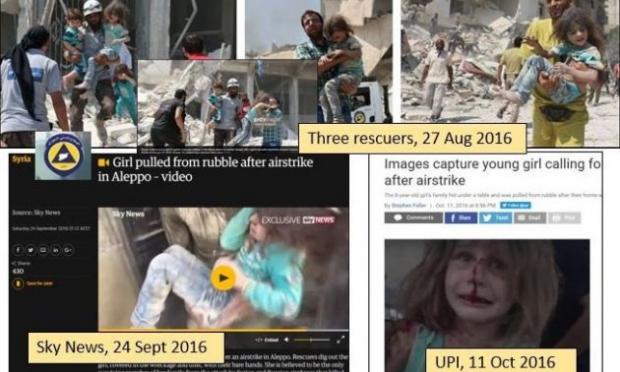 Αυτό σημαίνει δύο πράγματα. Ή το συγκεκριμένο παιδί αποτελεί «στόχο» των βομβαρδιστικών, τα οποία έχουν βαλθεί να το εξοντώσουν αλλά πάντα στο τέλος… σώνεται, ή πρόκειται απλά για ένα ακόμα παιδί-ηθοποιό που χρησιμοποιούν τα «Λευκά Κράνη» για την προπαγάνδα τους.