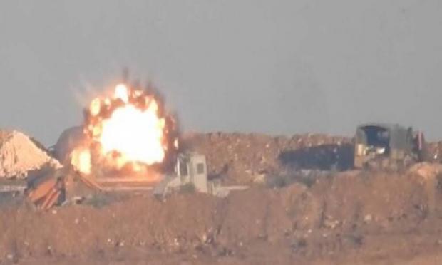 Νέες εικόνες έδωσε στη δημοσιότητα το Ισλαμικό Κράτος (ISIS), που δείχνουν την ανατίναξη ενός τουρκικού τεθωρακισμένου μεταφοράς προσωπικού στα περίχωρα της πόλης Αλ Μπαμπ στη βορειοδυτική Συρία.