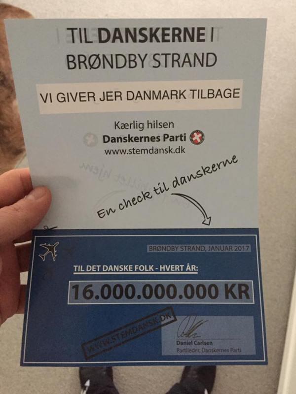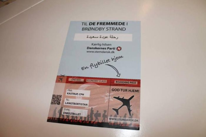 «Στος ξένους στο Brøndby Strand με αγάπη [από το Κόμμα των Δανών]» γράφει το «εισιτήριο».