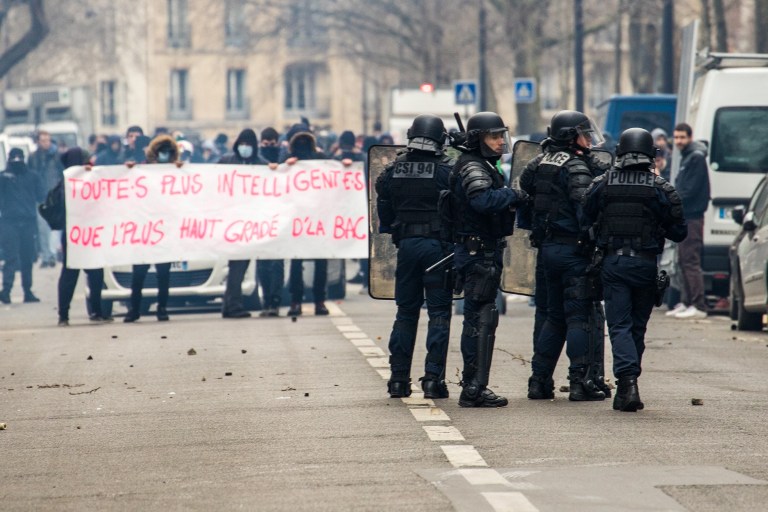Εκατοντάδες μαθητές λυκείου στη Γαλλία πραγματοποίησαν σήμερα συλλαλητήριο κατά της αστυνομικής βίας αποκλείοντας την είσοδο περίπου δέκα σχολείων στο Παρίσι, στην πιο πρόσφατη από μια σειρά διαμαρτυριών για τον φερόμενο βιασμό ενός νεαρού μαύρου με γκλομπ από αστυνομικό.
