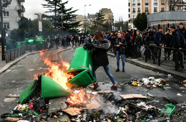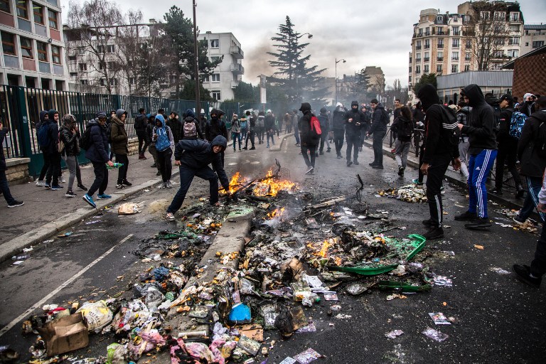 Η διεύθυνση της εκπαίδευσης του Παρισιού ανέφερε πως περισσότερα από δέκα σχολεία αποτέλεσαν στόχο νεαρών που συγκέντρωσαν κάδους σκουπιδιών και άλλα αντικείμενα στις πύλες εισόδου. Σε μία περίπτωση, ένας υποδιευθυντής σχολείου τραυματίστηκε από πυροσβεστήρα που εκσφενδόνισαν διαδηλωτές.