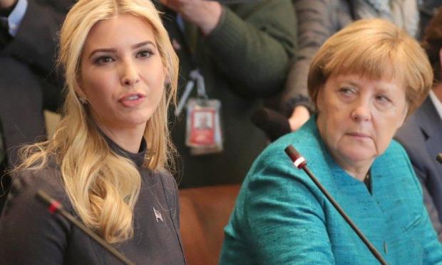Η αντίδραση της καγκελαρίου της Γερμανίας, της Άνγκελα Μέρκελ, στην παρουσία της Ιβάνκα Τραμπ ήταν τελείως διαφορετική, αφού της επιφύλαξε ένα ζεστό βλέμμα και ένα αβίαστο χαμόγελο. Ωστόσο, ούτε αυτή τη φορά έλειψε ένα... φονικό βλέμμα της Μέρκελ. Mε την Ιβάνκα, μάλιστα, να δείχνει ανέμελη εκείνη τη στιγμή κοιτάζοντας αλλού.