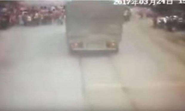 Στο βίντεο φαίνεται ένα φορτηγό να παρασύρει μαθητές που διέσχιζαν τον δρόμο με συνέπεια ένα παιδί να πεθάνει ακαριαία και άλλα τέσσερα να διακομιστούν σε τοπικό νοσοκομείο με δύο εξ αυτών να υποκύπτουν στα τραύματα τους.