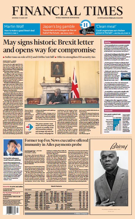 Financial Times: «Η Μέι υπογράφει ιστορική επιστολή για Brexit και ανοίγει τον δρόμο για συμβιβασμό»