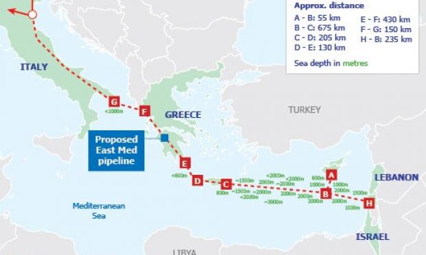 Ευρωπαίοι αξιωματούχοι και αξιωματούχοι του Ισραήλ έδωσαν σήμερα (03.04.2017) την στήριξή τους για να προχωρήσει το έργο ενός αγωγού στη Μεσόγειο που θα μεταφέρει φυσικό αέριο από το Ισραήλ στην Ευρώπη, στοχεύοντας στην ολοκλήρωσή του έως το 2025. Ο αγωγός θα περνά μέσω της Ελλάδας και συγκεκριμένα από την Κρήτη.