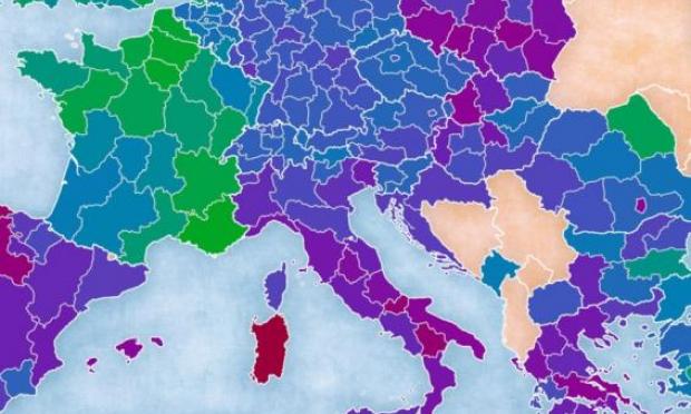 Αυτή τη φορά, λοιπόν, συγκέντρωσε στοιχεία για τη γονιμότητα σε όλη την Ευρώπη και τα χρησιμοποίησε για να φτιάξει ένα χάρτη της Γηραιάς Ηπείρου, ο οποίος δείχνει ποιες περιοχές έχουν υψηλά ποσοστά γονιμότητας και ποια χαμηλά.