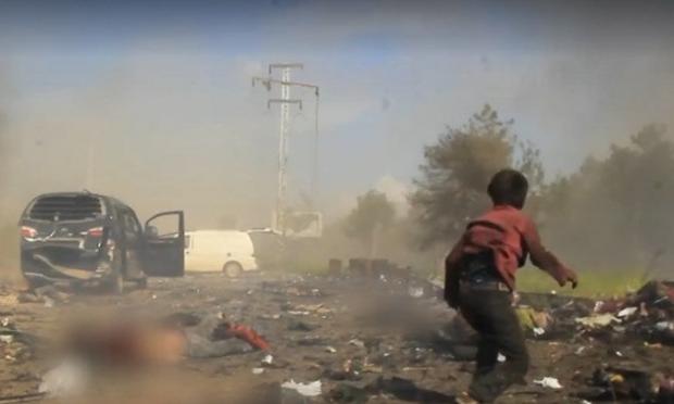 Είναι τα πρώτα λεπτά μετά τη βομβιστική βομβιστική επίθεση αυτοκτονίας εναντίον λεωφορείων στα οποία επέβαιναν άνθρωποι που εγκατέλειπαν φιλοκυβερνητικές περιοχές, έξω από το Χαλέπι. Στο μακελειό, έχασαν τη ζωή τους 126 άνθρωποι, μεταξύ των οποίων και 68 παιδιά.