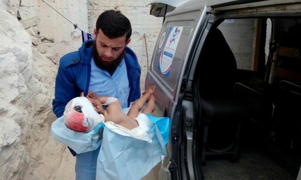 Μέλη σωστικών συνεργείων είπαν ότι το πρώτο αεροπορικό πλήγμα, νωρίς σήμερα, έπληξε νοσοκομείο στη Ντέιρ ας Σάρκι, με αποτέλεσμα να σκοτωθούν τρία μέλη του ιατρικού και νοσηλευτικού προσωπικού και να τραυματιστούν άλλα. Η δεύτερη επιδρομή έπληξε νοσοκομείο το οποίο στεγάζεται σε μια σπηλιά στο χωριό Μάαρ Ζίτα, στο νότιο τμήμα της επαρχίας Ιντλίμπ, όπου σύμφωνα με γιατρούς σκοτώθηκαν τουλάχιστον πέντε άνθρωποι.