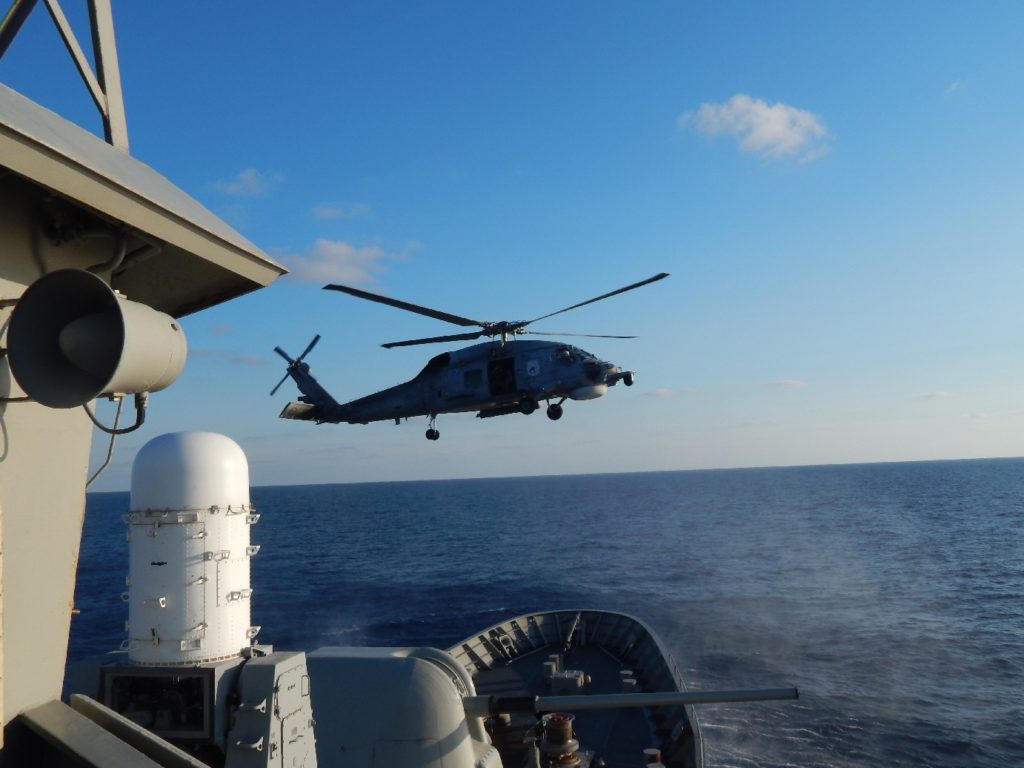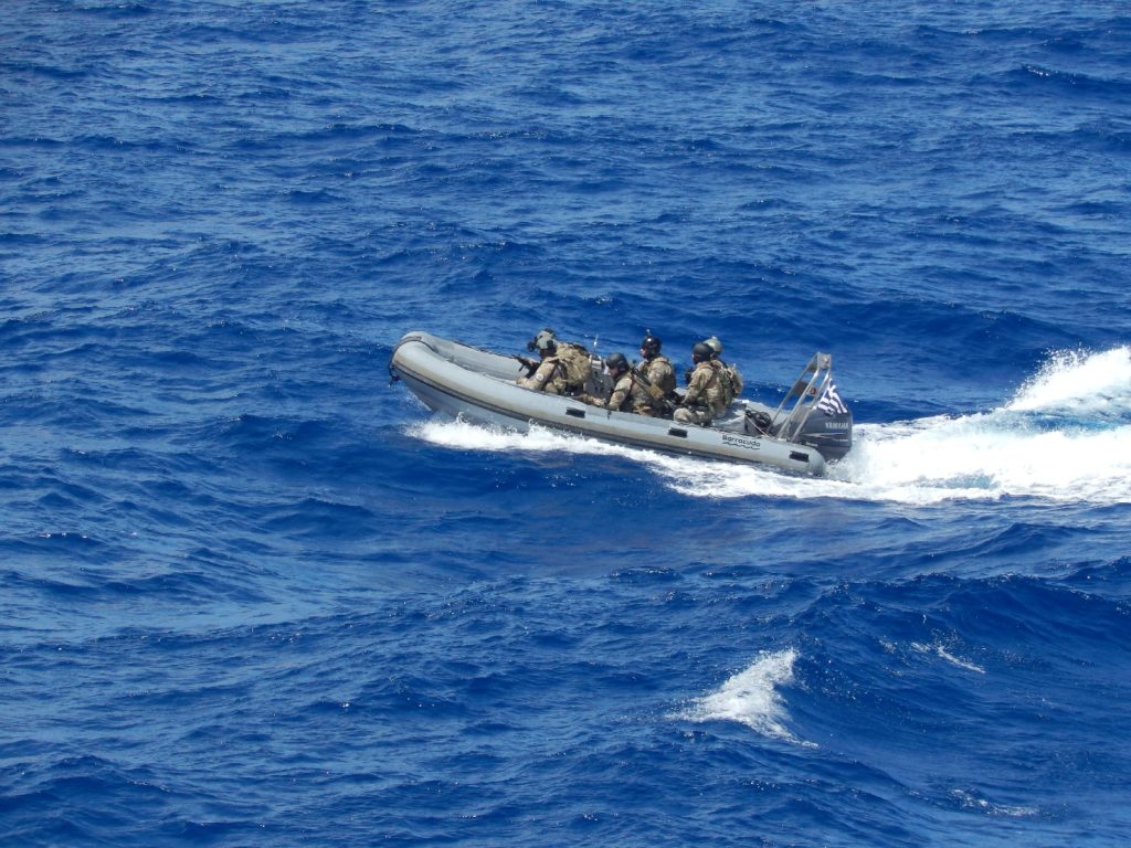 Κατά τη διάρκεια των 3rd Focused Operations, οι οποίες εντάσσονται στο ευρύτερο πλαίσιο των Επιχειρήσεων Θαλάσσιας Ασφάλειας (Maritime Security Operation-MSO) της “SEA GUARDIAΝ” η φρεγάτα ΣΑΛΑΜΙΣ πραγματοποίησε μεταξύ άλλων και νηοψία επί ύποπτου εμπορικού πλοίου, στην Κεντρική Μεσόγειο.