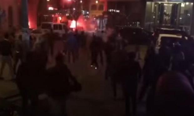Λίγο πριν τις 12 το βράδυ του Σαββάτου είχαμε μια νέα εστία έντασης. Περίπου 100 τούρκοι οπαδοί –πιθανότατα της Φενέρμπαχτσε- συγκεντρώθηκαν έξω από ξενοδοχείο όπου διαμένουν αρκετοί Έλληνες φίλοι του Ολυμπιακού, άρχισαν να τους προκαλούν φωνάζοντας «Ιστανμπουλ» ενώ πέταξαν και κάποια αντικείμενα προς την είσοδο του κτηρίου.