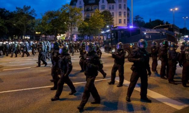 Το όργιο βίας στο Αμβούργο με τους αναρχικούς να πετούν πέτρες στους αστυνομικούς και τις αρχές να προσπαθούν να επιβάλουν την τάξη χρησιμοποιώντας αντλίες νερού και δακρυγόνα είχε ως αποτέλεσμα των τραυματισμό των 600 αστυνομικών.