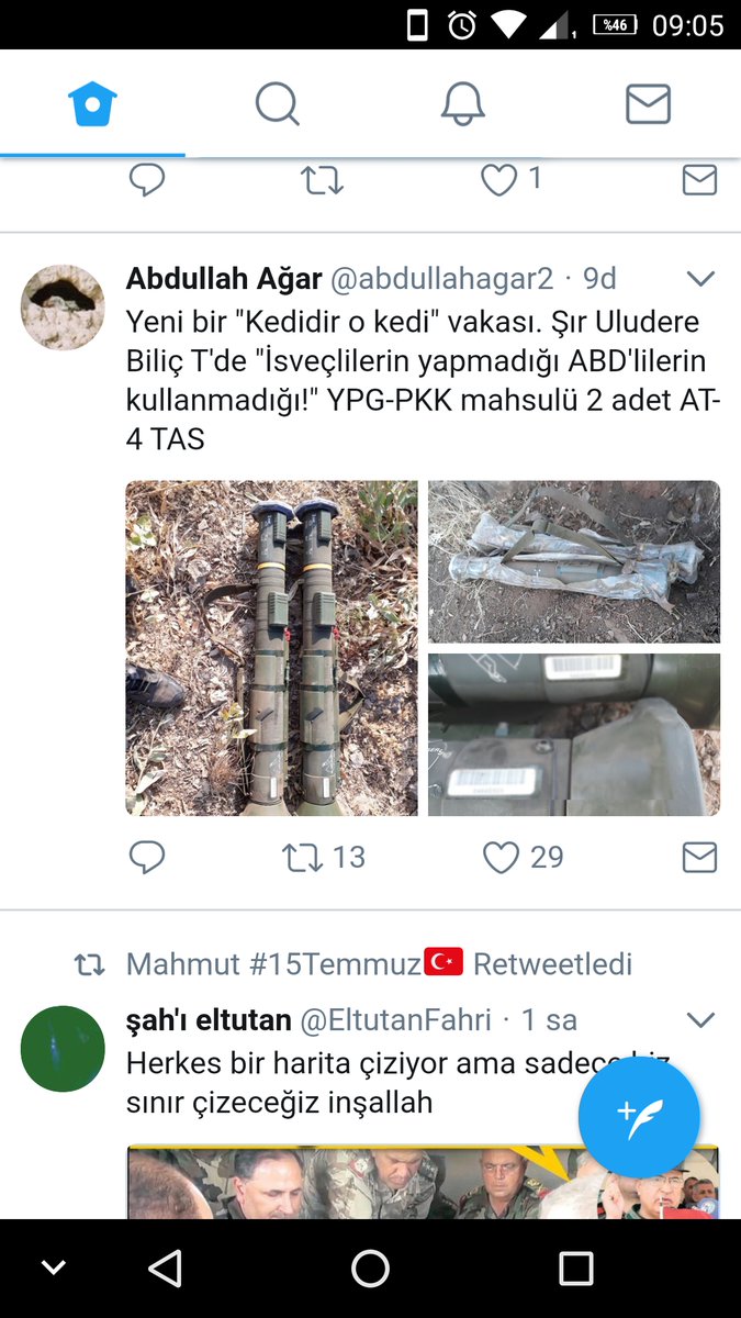 Υπάρχουν τρανές αποδείξεις πλέον, ότι οι δυνάμεις των Κούρδων στην Τουρκία εφοδιάστηκαν με βαρύ οπλισμό από τους Σύρους Κούρδους οι οποίοι με την σειρά τους εφοδιάστηκαν από τις ΗΠΑ ξεκινώντας νέο ακόμα πιο αιματηρό κύκλο επιθέσεων, μετά από ανάρτηση που εμφανίστηκε σε τουρκικά κοινωνικά δίκτυα αμυντικού περιεχομένου, και έγκυρες πηγές, παρουσιάζοντας κατασχεμένους υπερσύγχρονους αντιαρματικούς εκτοξευτές ATGM AT-4, που βρέθηκαν σε χέρια ΡΚΚάδων.