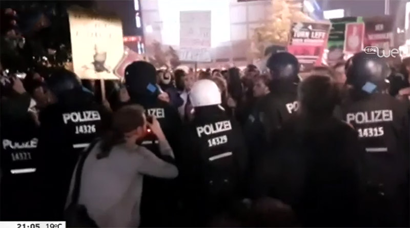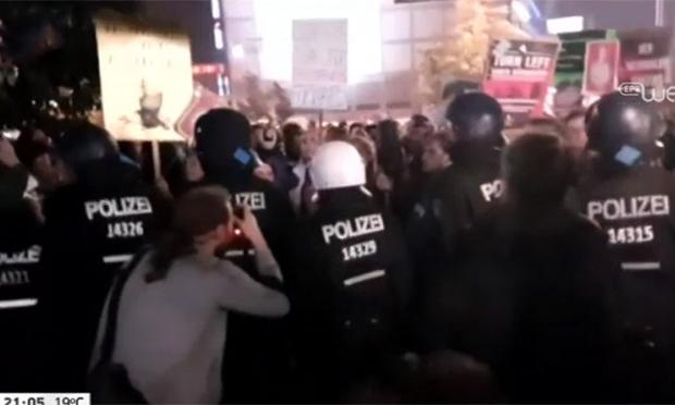 Επεισόδια σημειώνονται αυτήν την ώρα έξω από το εκλογικό κέντρο του κόμματος Εναλλακτική για τη Γερμανία, κατά τη διάρκεια συγκέντρωσης διαμαρτυρίας στο κέντρο του Βερολίνου.