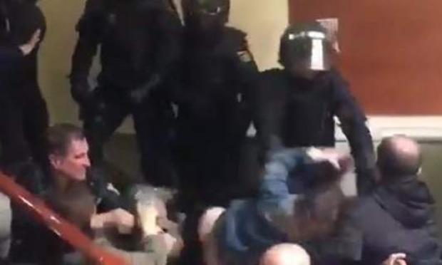 Αποφασισμένοι να βγάλουν με κάθε τρόπο τους ψηφοφόρους από τα εκλογικά κέντρα ήταν οι αστυνομικοί που έκαναν έφοδο σε αυτά, για να σταματήσουν το δημοψήφισμα στην Καταλονία.