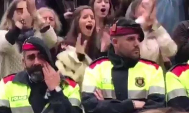 Στην μικρή πόλη Βιέλια κοντά στα γαλλικά σύνορα, η κάμερα ενός αυτόπτη μάρτυρα σε μια διαδήλωση κατέγραψε μια άκρως συγκινητική στιγμή: Δύο Καταλανούς αστυνομικούς να ξεσπούν σε κλάματα ακούγοντας τα συνθήματα των διαδηλωτών που προστάτευαν, παρακούοντας τις εντολές για βίαιη καταστολή.