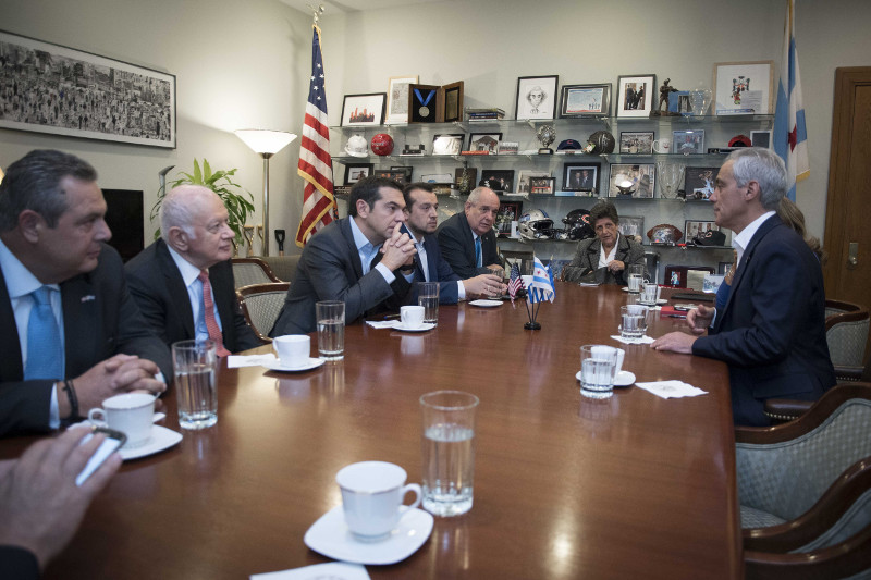 Σε εγκάρδιο κλίμα πραγματοποιήθηκε η συνάντηση του Αλέξη Τσίπρα με τον δήμαρχο του Σικάγο Rahm Emmanuel.