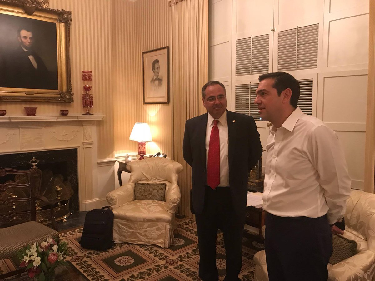 «Στο ιστορικό Blair House το οποίο επισκεπτόταν συχνά ο Αβραάμ Λίνκολν & στο οποίο έλαβαν χώρα σημαντικά γεγονότα της Αμερικανικής ιστορίας», έγραψε ο κ. Τσίπρας στο Twitter.