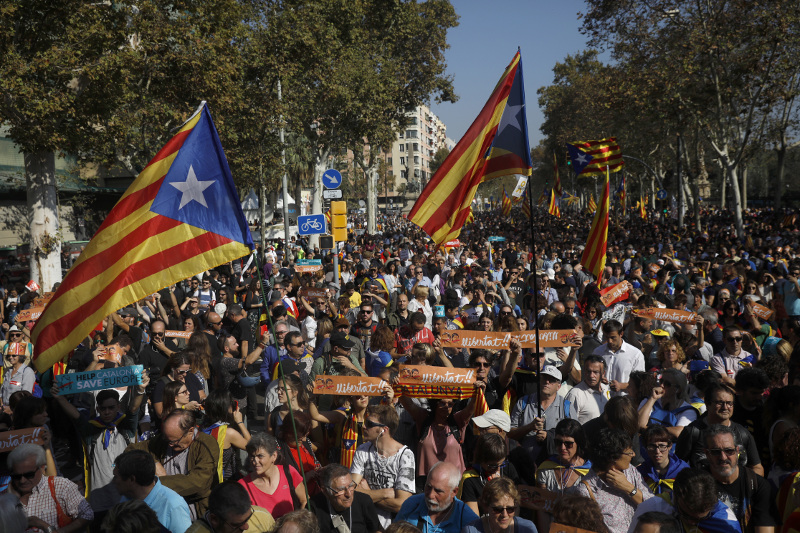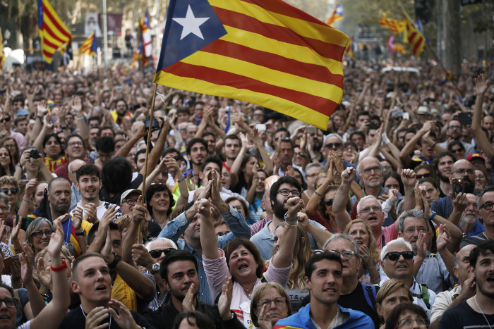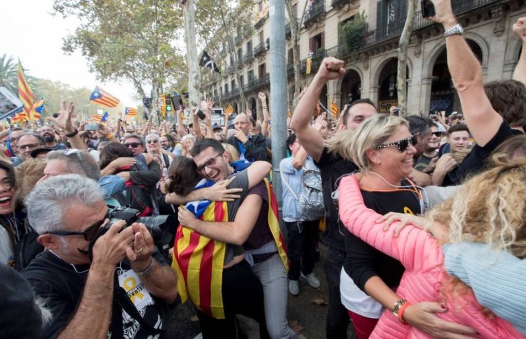 Χιλιάδες Καταλανοί ξεχύθηκαν στους δρόμους της Βαρκελώνης μετά την ανακήρυξη της ανεξαρτησίας από το τοπικό κοινοβούλιο.