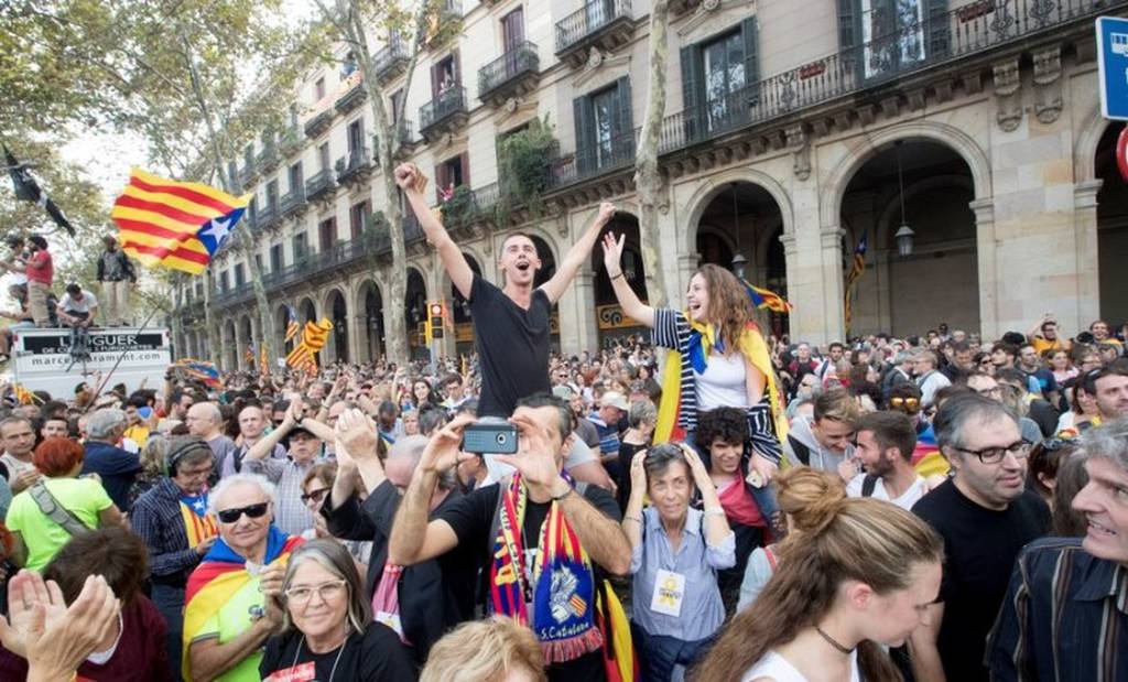 Ενθουσιασμένοι, ανοίγουν σαμπάνιες, τραγουδούν και χορεύουν στους δρόμους. Κατά διαστήματα, όπως μεταφέρουν τοπικά ΜΜΕ, οι πολίτες τραγουδούν συγκινημένοι τον εθνικό ύμνο της Καταλονίας.