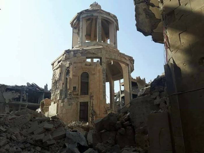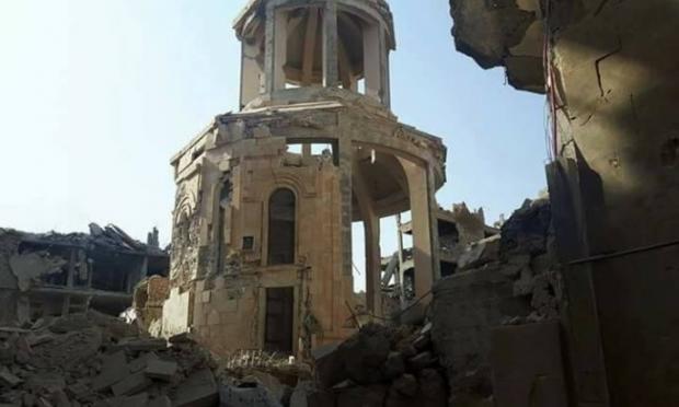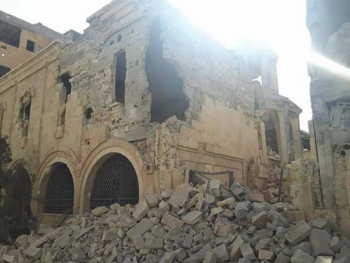 Πριν απελευθερωθεί, το μνημείο είχε πληγεί πολύ άσχημα από τον Ελεύθερο Συριακό Στρατό (FSA), το Μέτωπο αλ-Νόσρα (Jabhat Al-Nusra, Αλ Κάιντα στη Συρία) και το Ισλαμικό Κράτος (ISIS).