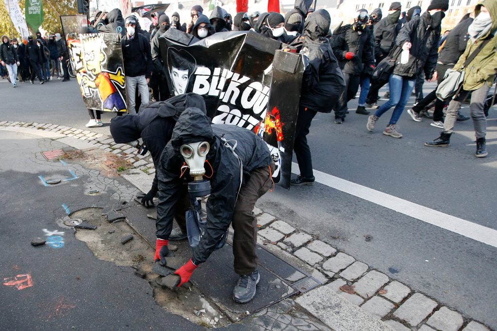 Επεισόδια ξέσπασαν στο Παρίσι, όπου ομάδες διαδηλωτών έσπασαν τζαμαρίες τραπεζών και ασφαλιστικών εταιρειών, μετέδωσαν δημοσιογράφοι του Γαλλικού Πρακτορείου. Φωνάζοντας «αντι-καπιταλιστές», νεαροί με κουκούλες έσπασαν επίσης τις βιτρίνες ενός υποκαταστήματος της τράπεζας BNP.
