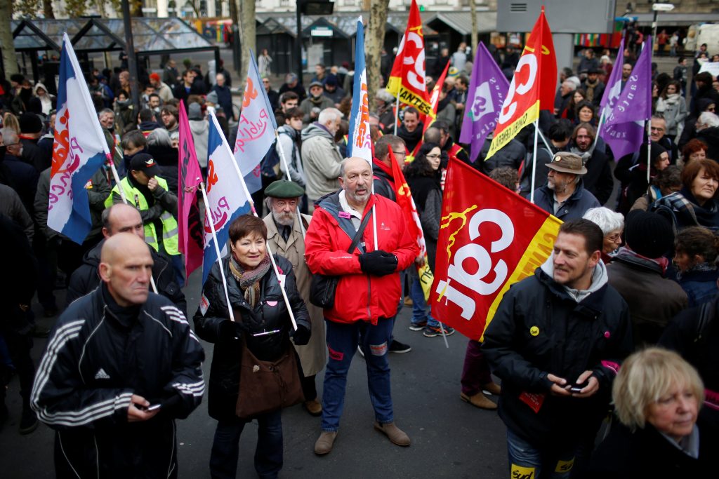 Χιλιάδες διαδηλωτές, επικριτές των μεταρρυθμίσεων του Εμανουέλ Μακρόν, κατέκλυσαν εκ νέου σήμερα τους δρόμους της χώρας, για τέταρτη φορά σε διάστημα δύο μηνών, προκειμένου να διαμαρτυρηθούν για τα προεδρικά διατάγματα, που τέθηκαν σε ισχύ από τον Σεπτέμβριο. Η κυβέρνηση από την άλλη και με την εμφανίζεται αποφασισμένη να προχωρήσει σε επιπλέον μεταρρυθμίσεις.