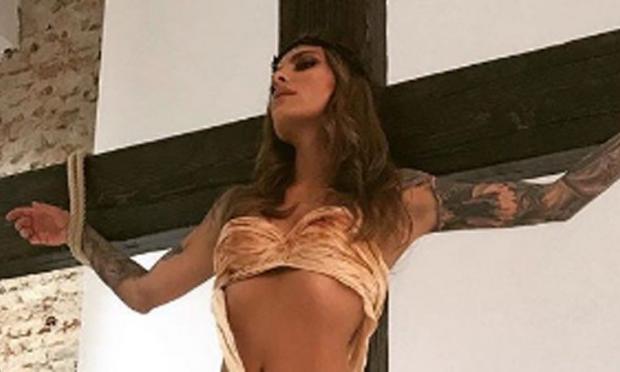 «Η πιο ένθερμη υποστηρίκτρια της Merkel, Sophia Thomalla, αναπαριστά την «Σταύρωση του Κυρίου» προβάλλοντας τα κάλλη της και γεμίζοντας τον …κουμπαρά της.