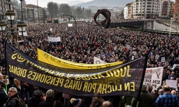 «Οπλισμένοι» με σφυρίχτρες κι έχοντας κρεμάσει στα ρούχα τους μια καφέ κορδέλα, σύμβολο των κινητοποιήσεών τους, οι διαδηλωτές ζήτησαν από τη συντηρητική κυβέρνηση του Μαριάνο Ραχόι την αναπροσαρμογή των συντάξεών τους σε ετήσια βάση, στο επίπεδο του πληθωρισμού.