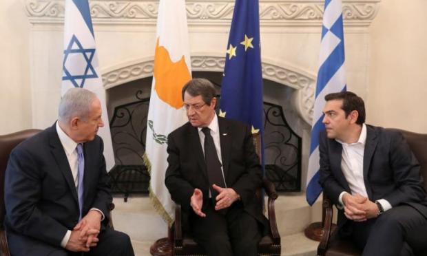 Με τον πρωθυπουργό του Ισραήλ Μπέντζαμιν Νετανιάχου και τον πρόεδρο της Κύπρου Νίκο Αναστασιάδη στο πλευρό του, ο πρωθυπουργός Αλέξης Τσίπρας έστειλε ακόμη ένα ηχηρότατο μήνυμα στην Τουρκία. Και την κάλεσε να σέβεται τους γείτονές της.