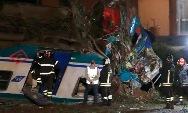 Το τρένο εκτροχιάστηκε όταν συγκρούστηκε με νταλίκα που είχε ακινητοποιηθεί σε διάβαση λίγο πριν περάσει η αμαξοστοιχία, τρία από τα βαγόνια της οποίας βγήκαν από τις σιδηροτροχιές, όπως εικονίζουν πλάνα που μετέδωσαν ιταλικά τηλεοπτικά δίκτυα.