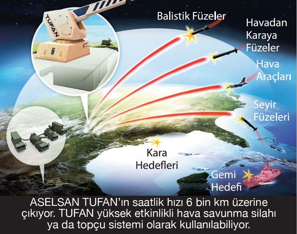 Η ASELSAN  σε ανακοίνωση της στον τουρκικό τύπο φέρεται να  ανακοινώνει ότι αναπτύσσει βλήμα που θα εκτοξεύεται από  πυροβόλο με την ονομασία TUFAN  με ηλεκτρομαγνητική ενέργεια με κύριο σκοπό αυτό στο μέλλον να τοποθετηθεί στις νέες υπό σχεδιασμό Φρεγάτες TF-2000, αποκτώντας έτσι τοπ τουρκικό ΠΝ τεράστιο πλεονέκτημα.