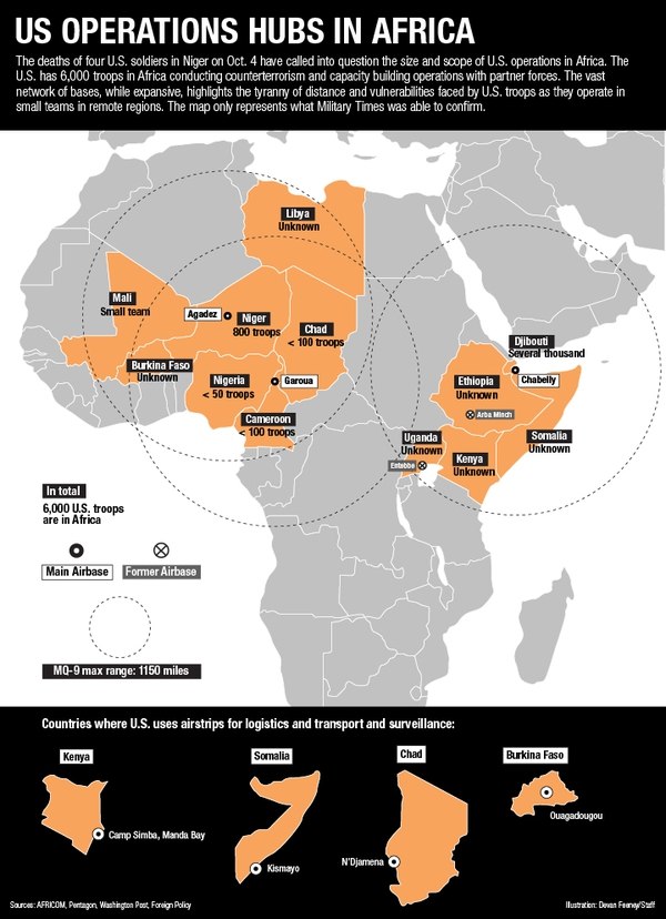 Ο Pahon αρνήθηκε να πει ποια είναι η βάση των drones. Ειδικότερα, οι ΗΠΑ αυτή τη στιγμή επεκτείνουν την αεροπορική βάση Agadez στο Νίγηρα για να προετοιμαστεί η υποδοχή και νέων MQ-9.