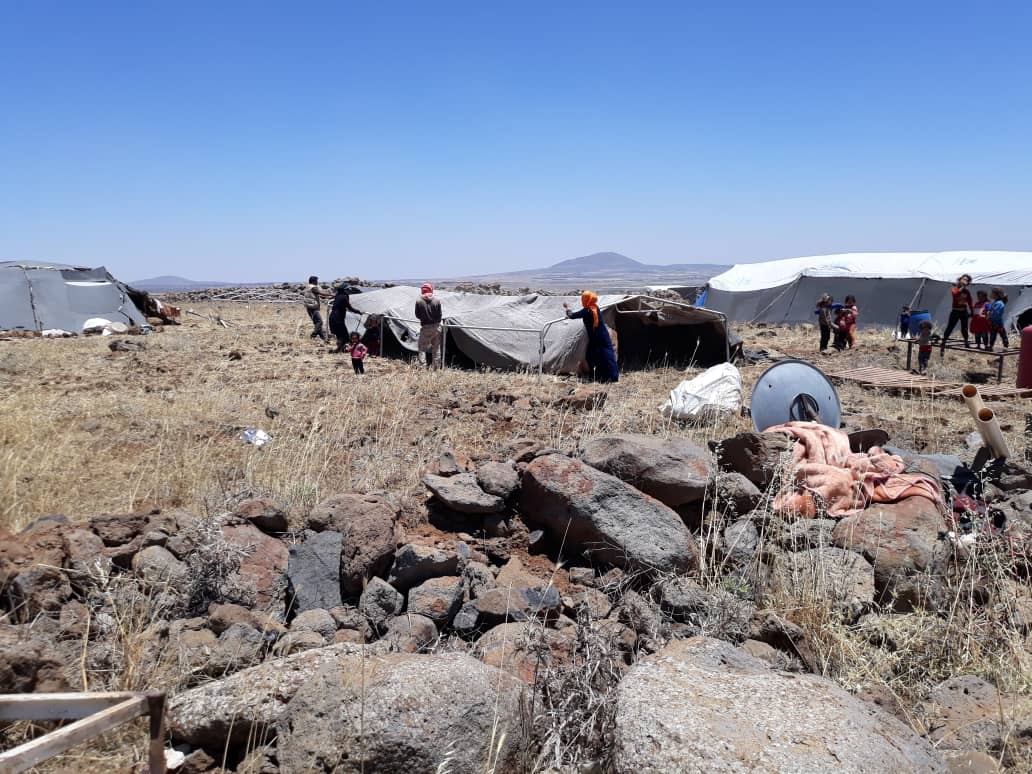 Εξ αυτών περίπου 70.000 έχουν συγκεντρωθεί κοντά σε ένα κλειστό πέρασμα στα σύνορα με την Ιορδανίας, όπου ολόκληρες οικογένειες ζουν σε αυτοσχέδιους καταυλισμούς, ακόμη και στο ύπαιθρο, με ελάχιστη πρόσβαση σε νερό και τρόφιμα.