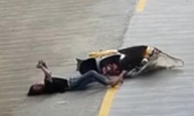 Απερίσπαστη παρακολουθούσε το κινητό της ενώ οδηγούσε το σκούτερ της σε δρόμο επαρχίας στην ανατολική Κίνα, με αποτέλεσμα να συγκρουστεί με άλλη μηχανή και να ανατραπεί.