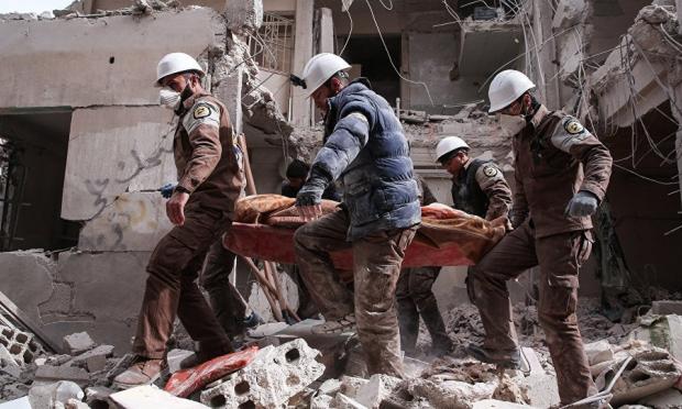 Τα πλάνα δείχνουν ότι αρκετοί άνθρωποι δέχονται ρίψεις νερού από τους τρομοκράτες των Λευκών Κρανών για να δώσουν την εντύπωση ότι προσπαθούν να τους βοηθήσουν αφού έχουν επιτεθεί με χημικά όπλα, αναφέρει το SANA.