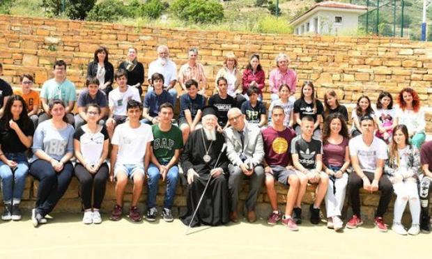 Ο Οικουμενικός Πατριάρχης Βαρθολομαίος μαζί με τους μαθητές Λυκείου- Γυμνασίου της Ιμβρου.