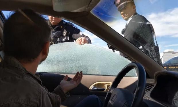 Η ασυνεννοησία δεν σταματά όμως εδώ. Ο οδηγός του αυτοκινήτου δεν ήθελε να συνεργαστεί και αρνούνταν πεισματικά να ανοίξει το παράθυρό του, αλλά να τους δείξει και την ταυτότητά του. Έλεγε συνεχώς ότι δεν του ζητήθηκε η άδεια οδήγησης και η άδεια του αυτοκινήτου, ενώ οι αστυνομικοί τον προειδοποιούσαν ότι θα του έσπαγαν το τζάμι και ότι θα τον έβγαζαν έξω με το ζόρι.