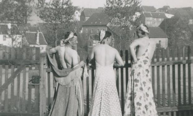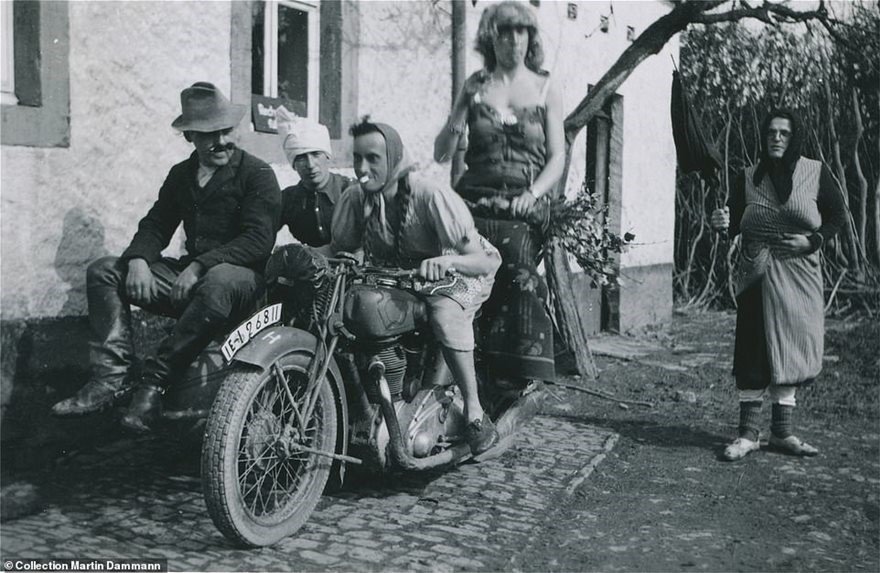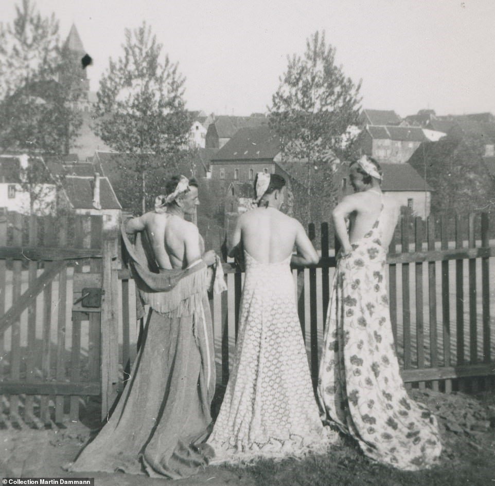 Φορώντας βραδινές τουαλέτες που στην πραγματικότητα ήταν αυτοσχέδια φορέματα από κουρτίνες, οι στρατιώτες του Τρίτου Ράιχ πόζαραν στο φακό.