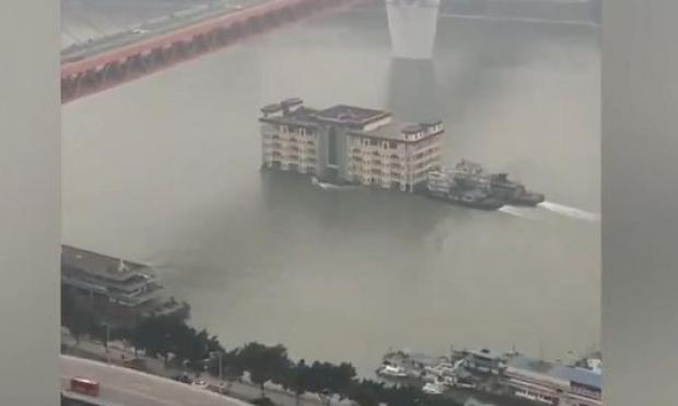 Ο άνδρας που τράβηξε αυτές τις εικόνες έμεινε με το στόμα ανοικτό το περασμένο Σάββατο όταν είδε ένα πενταόροφο κτίριο να πλέει στον ποταμό Γιανγκτσέ στο Τσονγκίνγκ της Κίνας!